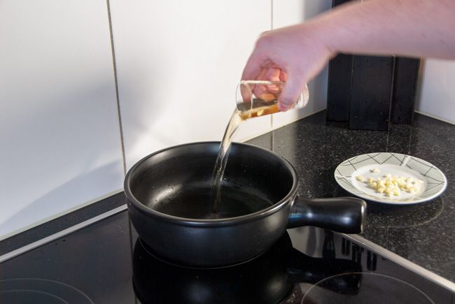 Ccoupez-la gousse en deux, écrasez-les et frottez-les contre les parois de votre caquelon.