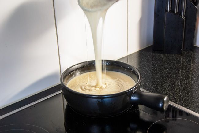 Il est important de bien remuer le mélange, à chaque fois, pour éviter que la fondue ne brûle au fond.