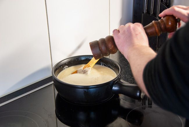 Versez le vin blanc dans votre caquelon et portez-le à ébullition.